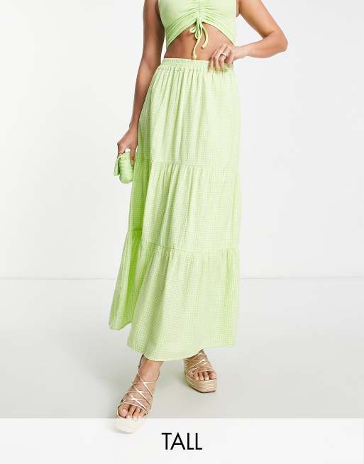 Pieces Tall – Warstwowa sukienka maxi w limonkową kratkę vichy