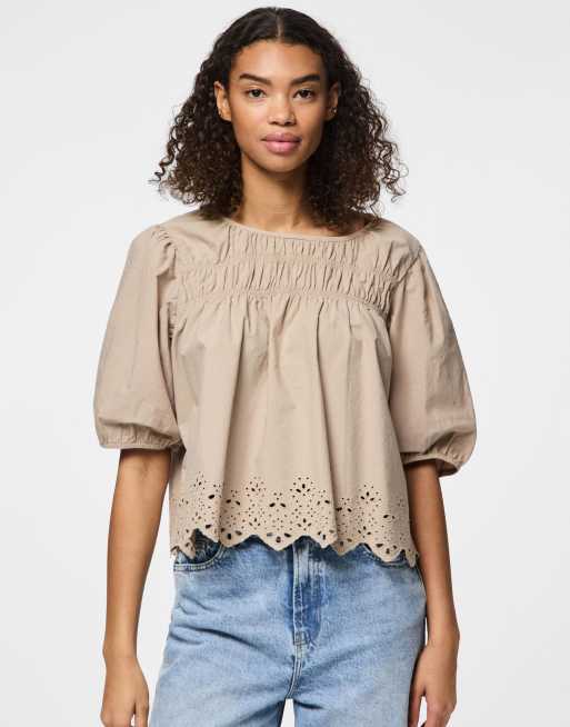 Pieces – Beżowy top z krótkim rękawem