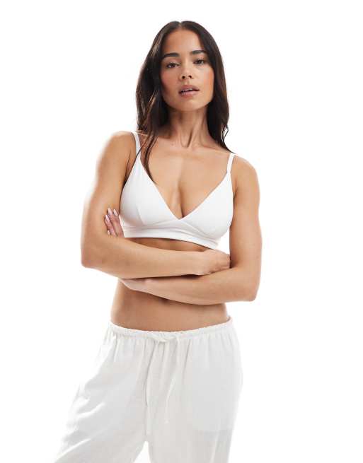 Pieces – Bezszwowy biały biustonosz z trójkątnymi miseczkami
