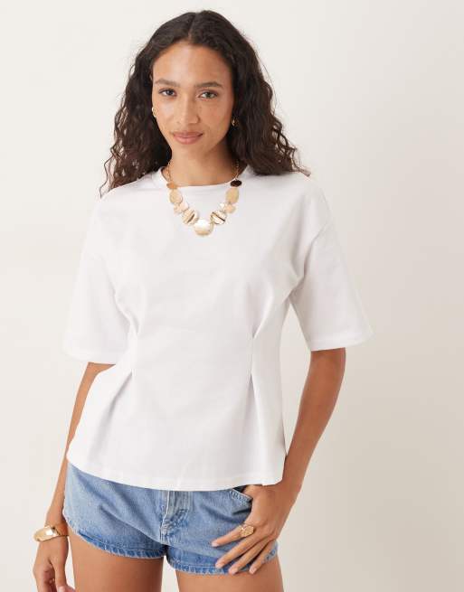 Pieces – Biały dżersejowy T-shirt z zaszewkami w talii