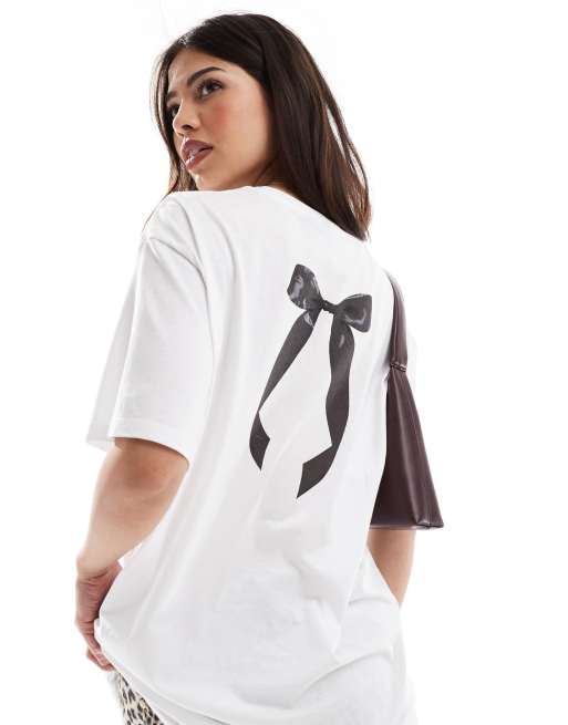 Pieces – Biały T-shirt oversize z kokardką na plecach