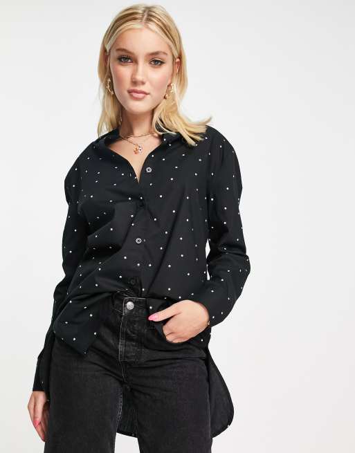 Pieces – Czarna koszula w kropki o wydłużonym fasonie