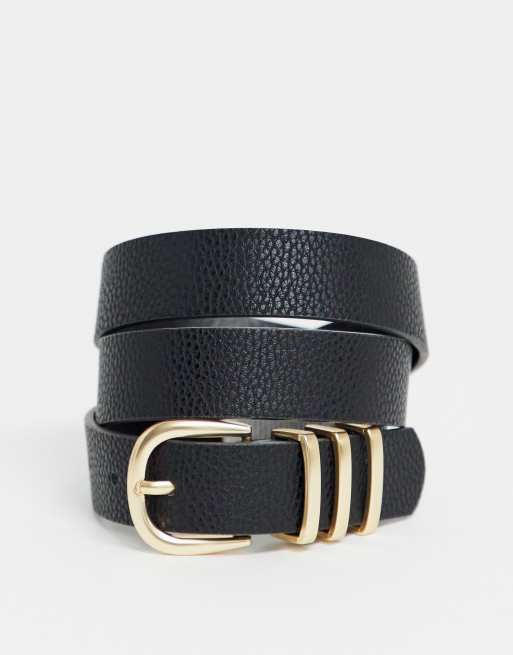 Pieces – Czarny pasek ze złotą sprzączką
