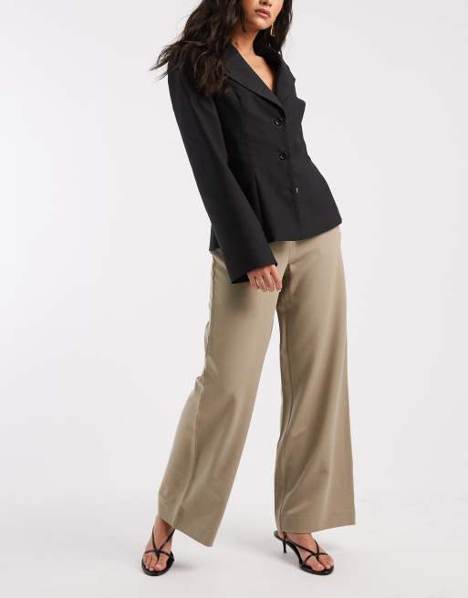 Pieces – Eleganckie spodnie z szerokimi nogawkami i podwyższonym stanem w jasnym odcieniu khaki