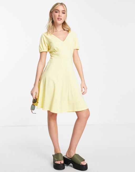 Pieces – Gotta – Beżowa dżersejowa sukienka typu skater z krótkimi rękawami