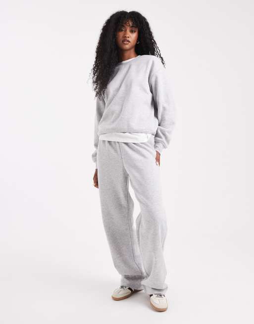 Pieces – Jasnoszare melanżowe joggersy z szerokimi nogawkami, część zestawu