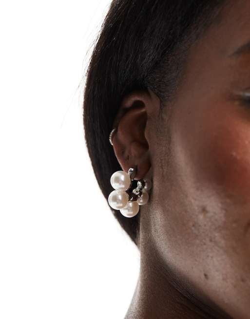 Pieces – Kolczyki-kółka z perełkami w kolorze srebra