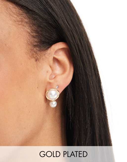 Pieces – Kolczyki wkrętki z podwójnymi perełkami w kolorze złota
