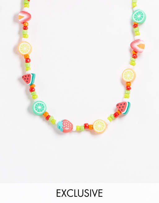 Pieces – Kolorowy naszyjnik z koralikami w kształcie owoców – Tylko w ASOS