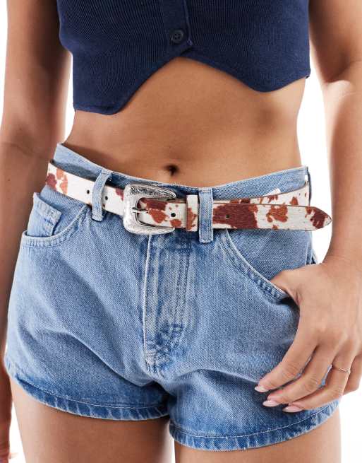 Pieces – Kowbojski pasek z imitacją włosia i klamrą