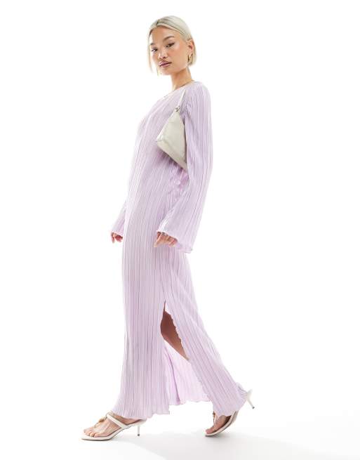 Pieces – Liliowa plisowana sukienka maxi z rozcięciami po bokach