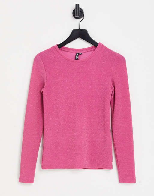 Pieces – Narita – Różowy dżersejowy top z długim rękawem