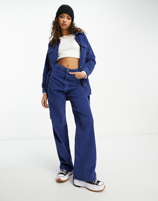 Pieces – Niebieskie sztruksowe spodnie z szerokimi nogawkami i wysokim stanem, część zestawu