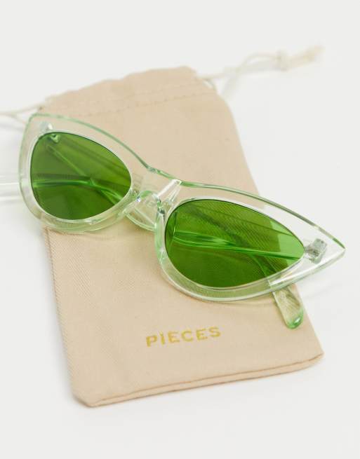 Pieces – Okulary przeciwsłoneczne typu kocie oczy z zielonymi szkłami