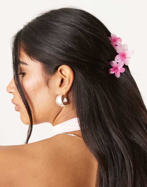 Pieces – Różowa klamra do włosów w kształcie hawajskiego kwiatka