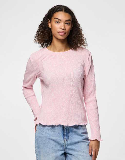 Pieces – Różowy top z długim rękawem
