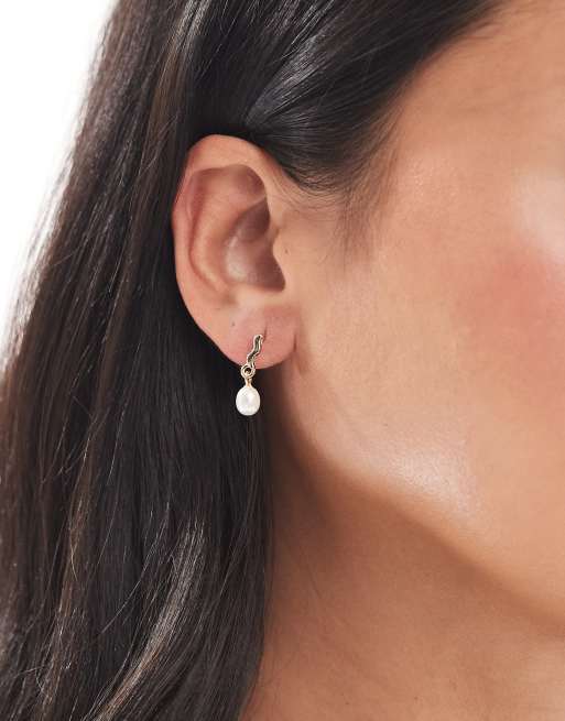 Pieces – Stopione kolczyki z metalu w złotym kolorze z perełkami