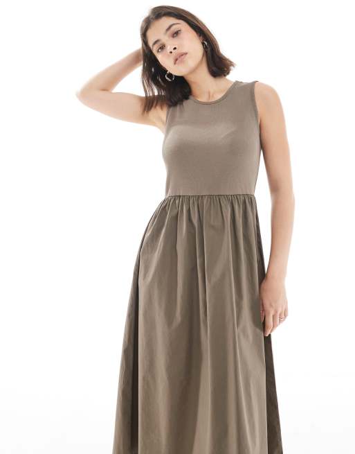Pieces – Sukienka midi bez rękawów ze spódnicą z tkaniny w chłodnym odcieniu brązu