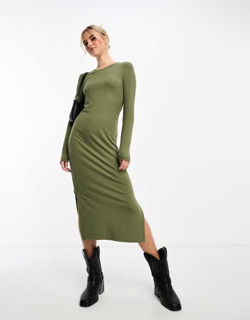 Pieces – Sukienka midi bodycon z dekoltem w kształcie litery U w kolorze khaki