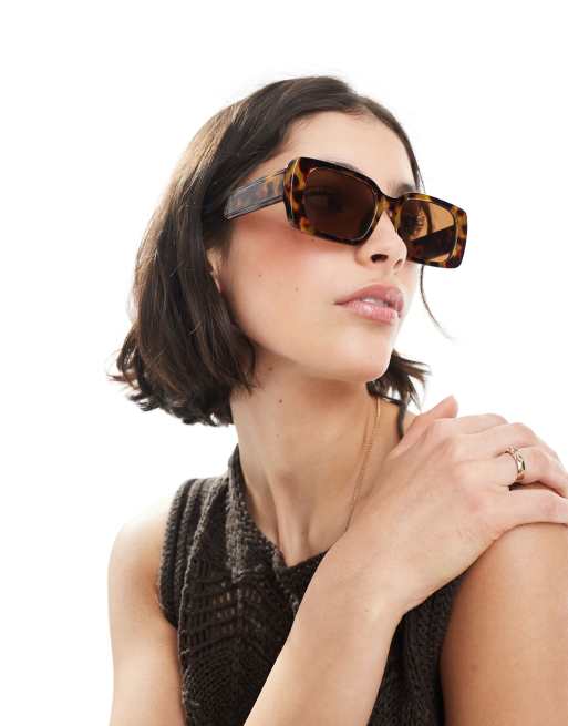 Pieces – Szylkretowe prostokątne okulary przeciwsłoneczne z brązowymi soczewkami