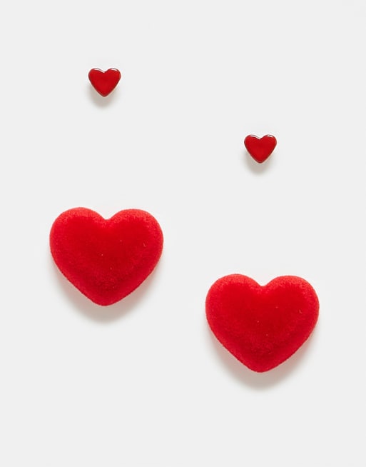 Pieces – Zestaw 2 par czerwonych aksamitnych kolczyków w kształcie serca