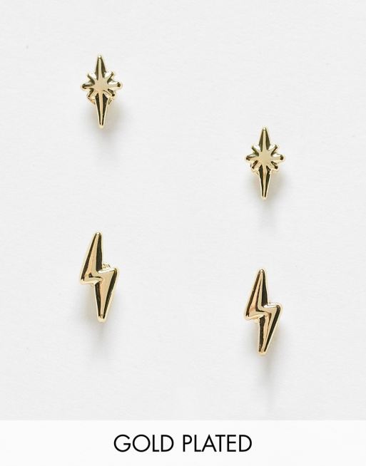 Pieces – Zestaw 2 par kolczyków wkrętek w kolorze złotym z błyskawicą i gwiazdką