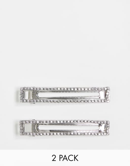 Pieces – Zestaw 2 spinek do włosów w srebrnym kolorze z kryształkami