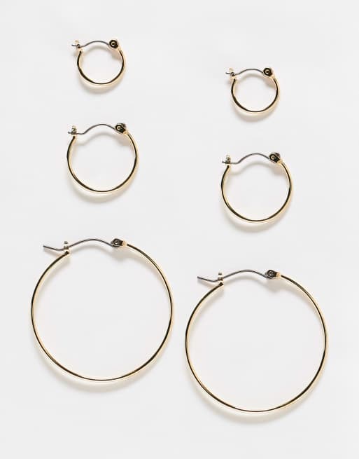 Pieces – Zestaw 3 par kolczyków w kolorze złota o różnych wielkościach