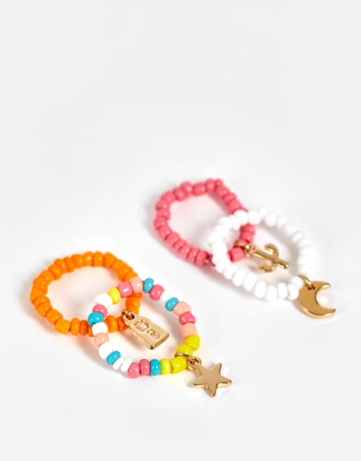 Pieces – Zestaw 4 pierścionków z koralików w różnych kolorach