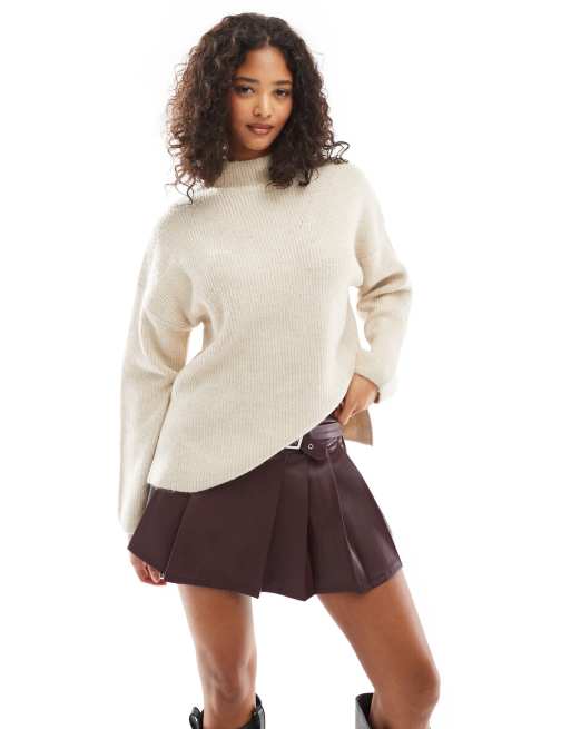 Pimkie – Beżowy dzianinowy sweter z golfem i rozcięciem po bokach