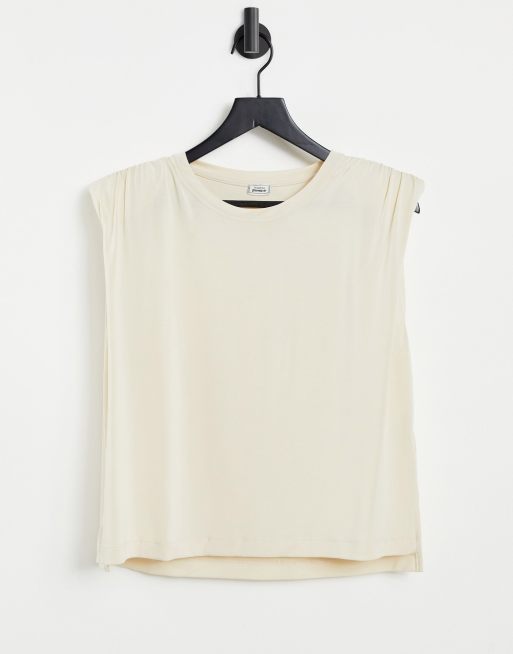 Pimkie – Beżowy T-shirt z poduszkami na ramionach