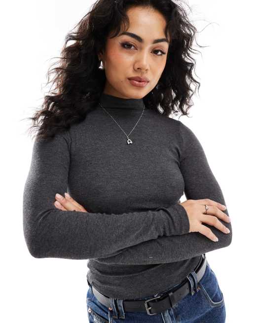 Pimkie – Ciemnoszary, prążkowany top z golfem