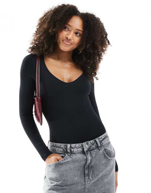 Pimkie – Czarne body z głębokim dekoltem w kształcie litery U