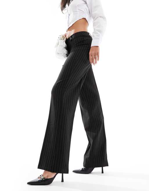 Pimkie – Dopasowane czarne spodnie z szerokimi nogawkami w prążki