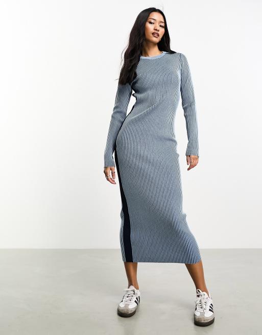 Pimkie – Niebieska sukienka midaxi z prążkowanej dzianiny