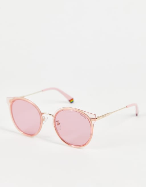 Polaroid – Różowe okrągłe okulary przeciwsłoneczne w metalowych oprawkach PLD 6152/G/S