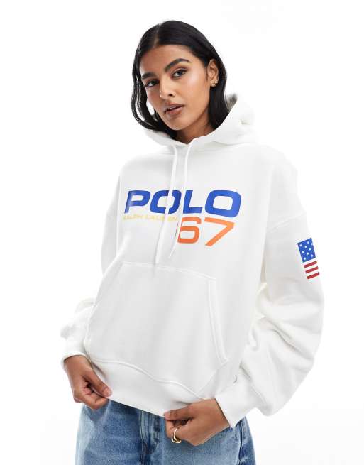 Polo Ralph Lauren – Biała bluza z kapturem i sportową grafiką