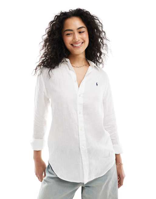 Polo Ralph Lauren – Biała koszula w lnianym stylu z logo