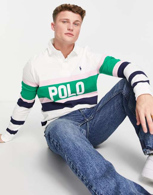 Polo Ralph Lauren – Biała koszulka polo z logo w kolorowe paski