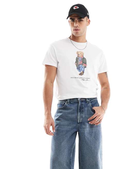 Polo Ralph Lauren – Biały T-shirt oversize z nadrukiem misia podróżnika