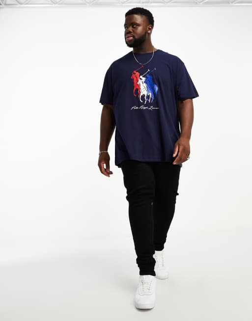 Polo Ralph Lauren Big & Tall – Granatowy T-shirt oversize z trzykolorowym logo