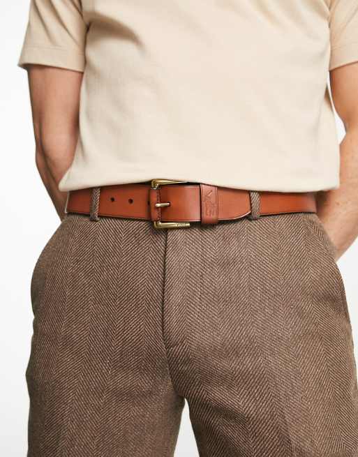 Polo Ralph Lauren – Brązowy gładki pasek skórzany z logo z koniem