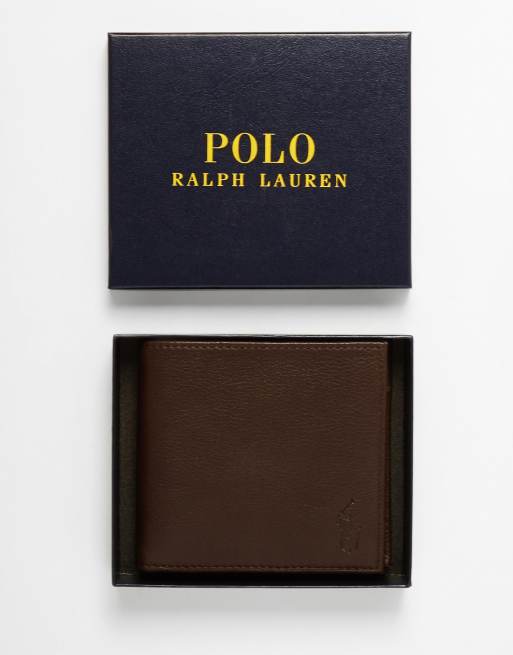 Polo Ralph Lauren – Brązowy skórzany składany portfel z kieszonką na monety