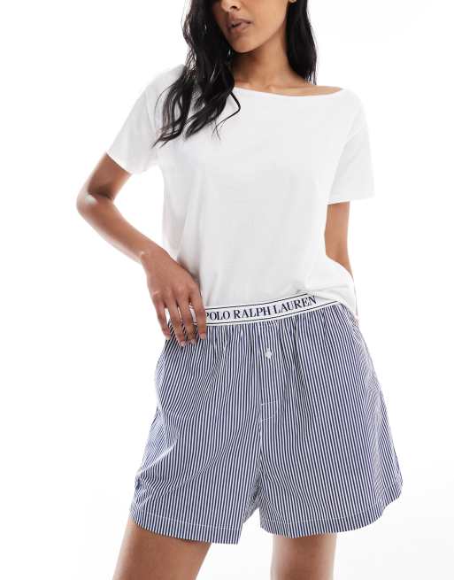 Polo Ralph Lauren – Ciemnoniebieskie szorty bokserki w paski z taśmą z logo