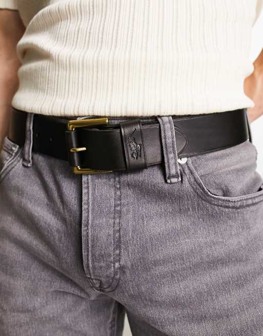 Polo Ralph Lauren – Czarny gładki pasek skórzany z logo