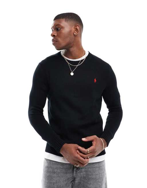 Polo Ralph Lauren – Gruby czarny sweter z bawełnianej dzianiny z logo