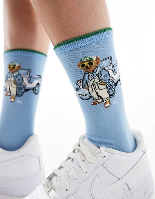 Polo Ralph Lauren – Jasnoniebieskie skarpetki z logo z misiem