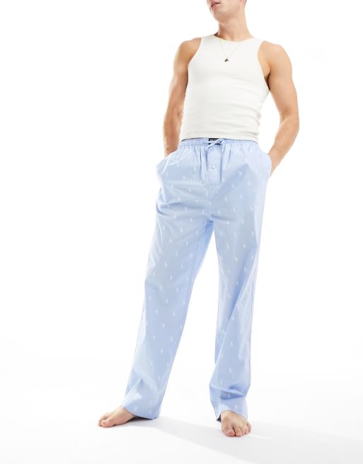 Polo Ralph Lauren – Jasnoniebieskie spodnie od piżamy z nadrukiem logo na całej powierzchni