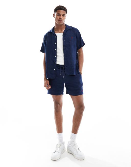 Polo Ralph Lauren – Prepsters – Granatowe lniane szorty z logo, część zestawu