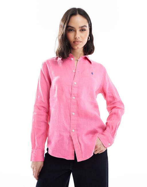 Polo Ralph Lauren – Różowa koszula lniana z logo